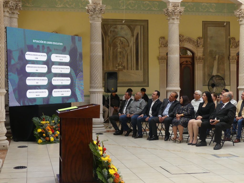 El Colegio de Educación Profesional Técnica del Estado de Chihuahua (Conalep), plantel Parral, realizó su informe anual de actividades y rendición de cuentas del ciclo 2024-2025 en el emblemático recinto del Palacio de Alvarado, en la ciudad de Parral.