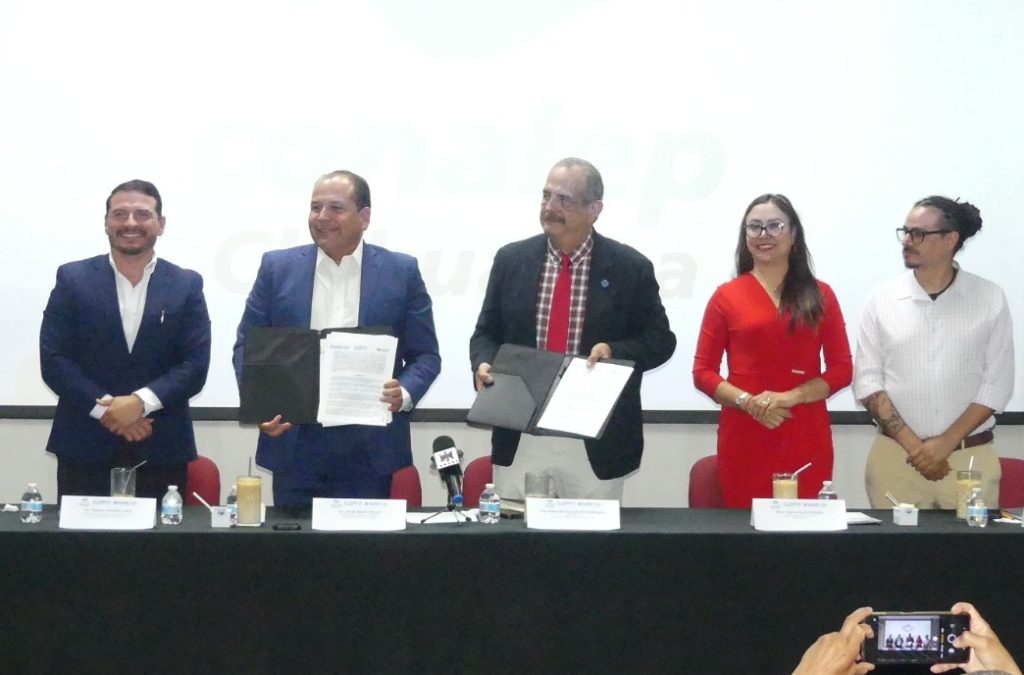 El Colegio de Educación Profesional Técnica del Estado de Chihuahua (Conalep) firmó convenios de colaboración con la Asociación de Comerciantes del Centro de la Ciudad de Chihuahua (Cocentro) y la Cámara Nacional de Comercio, Servicios y Turismo (Canaco), con el fin de fortalecer los lazos entre el sector educativo y el empresarial de la capital del estado.