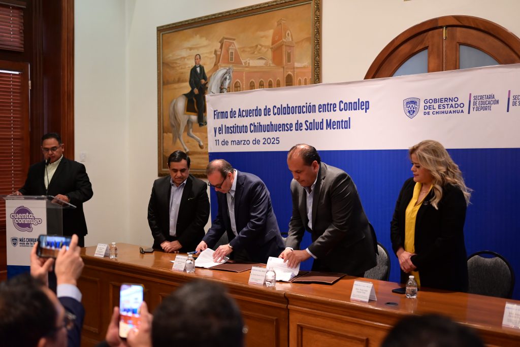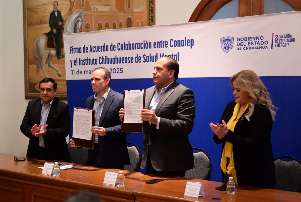 El Colegio de Educación Profesional Técnica del Estado de Chihuahua (Conalep) y el Instituto Chihuahuense de Salud Mental, firmaron un convenio de colaboración con el propósito de promover acciones en beneficio de la salud mental de las alumnas y alumnos de este subsistema educativo.