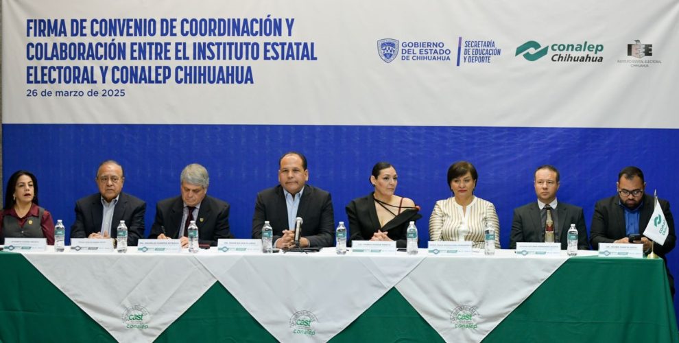 Con el objetivo de fomentar la cultura política democrática, y la participación ciudadana entre la comunidad estudiantil y la sociedad en general, el Instituto Estatal Electoral de Chihuahua (IEE) y el Colegio Nacional de Educación Profesional Técnica (Conalep), firmaron un convenio de colaboración.