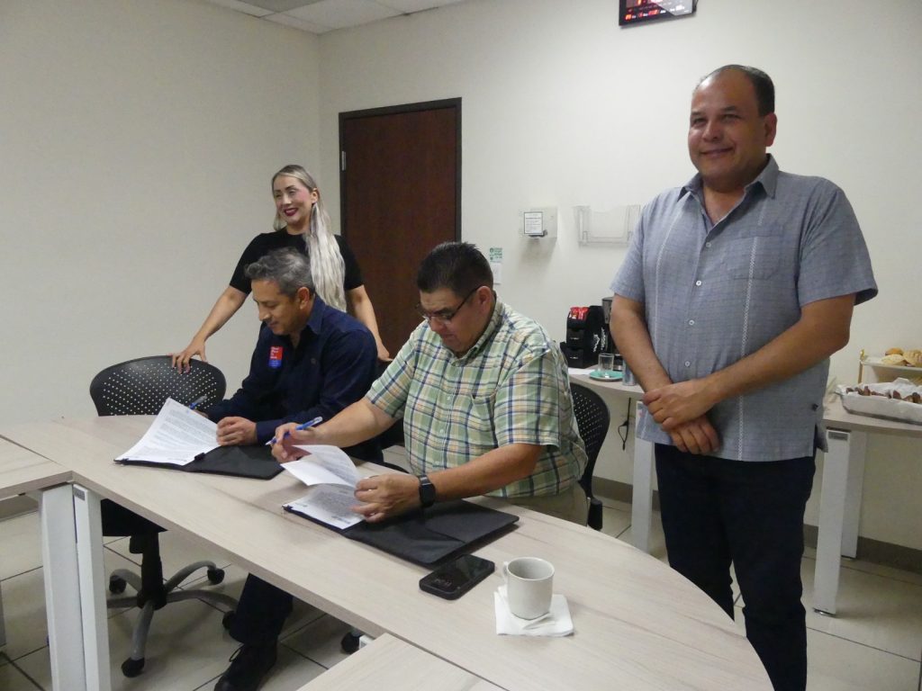 En representación de la empresa, firmaron el convenio: Bélgica Márquez Lozoya, apoderada legal; y Octavio Monzalvo Sarmiento, gerente de Ingeniería; y por parte de la institución educativa: Omar Bazán Flores, director general del Sistema Conalep; y Raúl Roberto Carmona Tarango, director del Plantel Delicias.