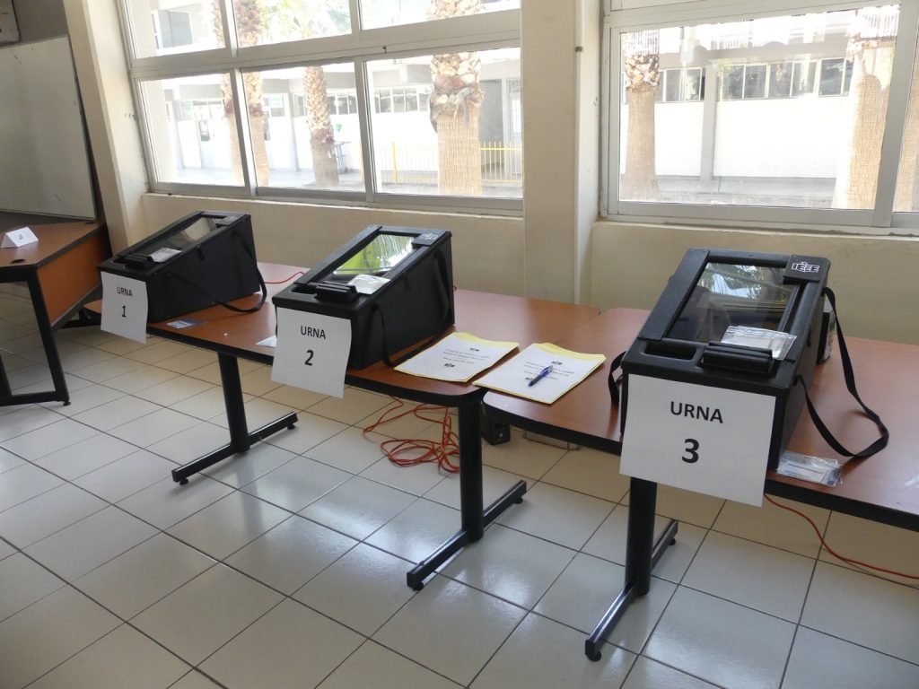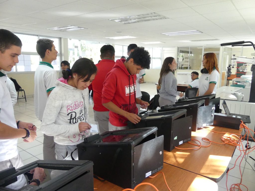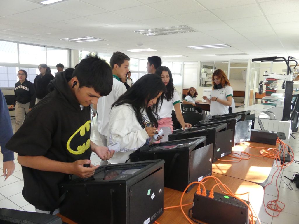 Personal del IEE instaló las urnas electrónicas en la biblioteca del plantel, donde de manera ordenada fueron ingresando los grupos de estudiantes de ambos turnos, y por medio de listas oficiales que fungieron como padrón electoral, se registró a quienes emitieron su voto.